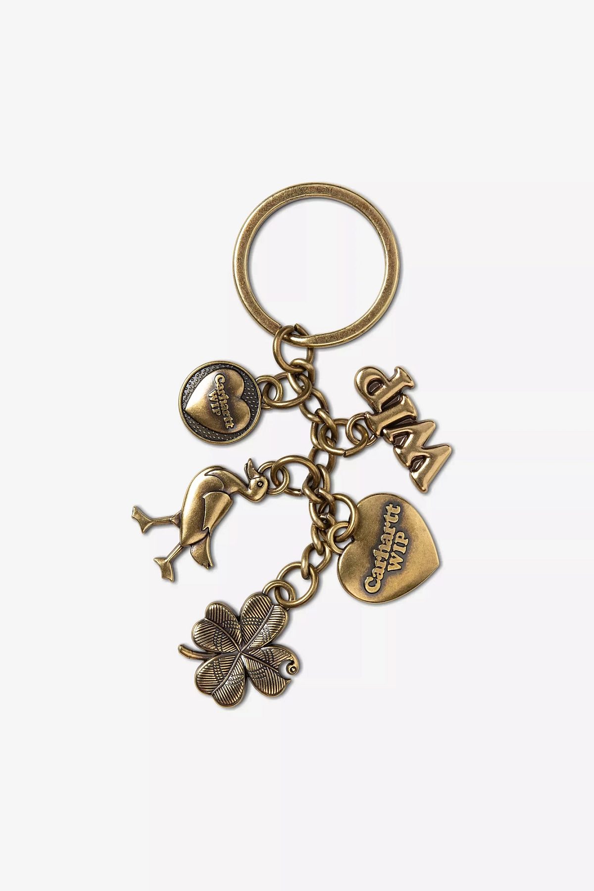 The Charms Keychain is made from zinc alloy with antique-inspired plating, and features five graphic pendants with embossed branding.