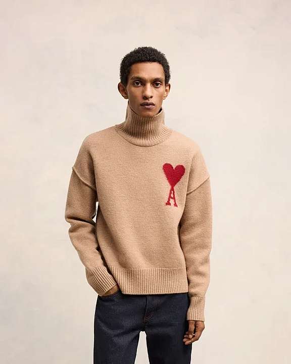 Intarsia knitted red Ami de Coeur on the chest