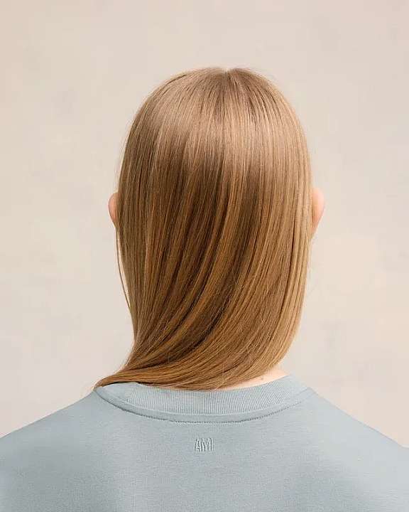Tonal "AMI" embroidery under back neckline
