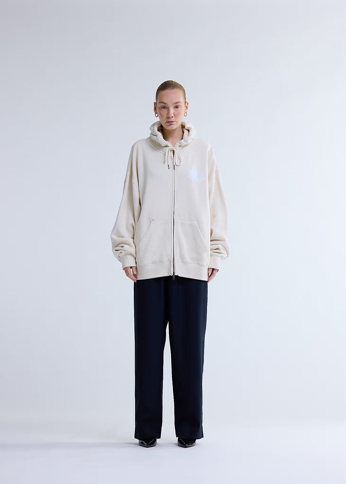Hooded zipper sweater, cut to a relaxed unisex fit. Designed with a larger tonal embroidered shell on the front, featuring an updated seasonal embroidery. Crafted from heavyweight 455 GSM garment.