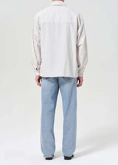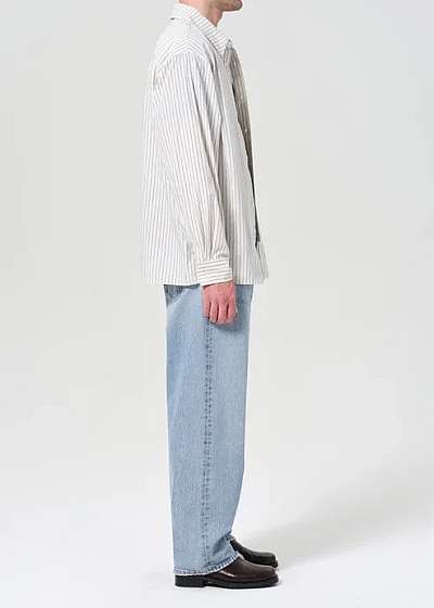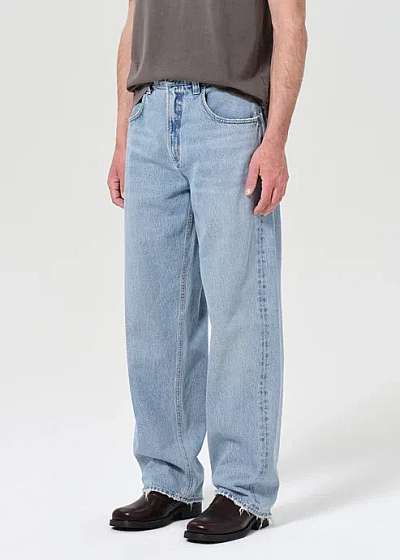 A baggy, mid-rise fit crafted from rigid, heavyweight denim in a vintage light marbled indigo with fading, whiskering, and grinding details. Made from 100% Regenerative Cotton, this jean offers a soft hand feel and all-day wearability.