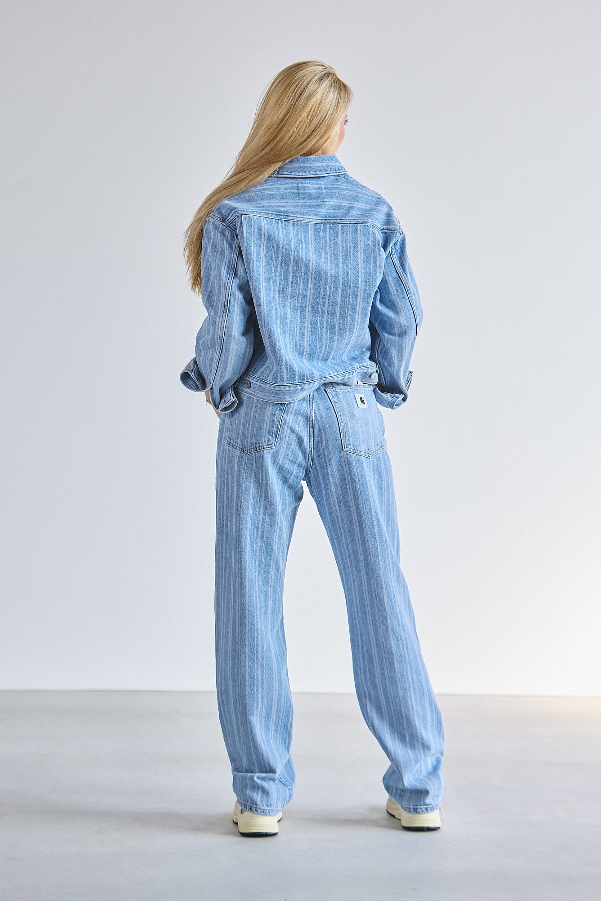 The Women's Rylan Pant is made in a straight fit from heavyweight cotton denim featuring allover stripes. The item is detailed with a back yoke and bartack stitching at vital stress points. A woven Square Label appears on the rear pocket.