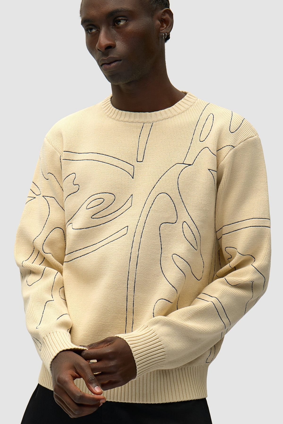 Made from heavyweight cotton, the knitted sweater comes in a cream colorway and has a regular fit. The knit features an all-over Arte graphic logo stitched in navy. The cream colored knit is finished with ribbed trimmings and has a regular fit.