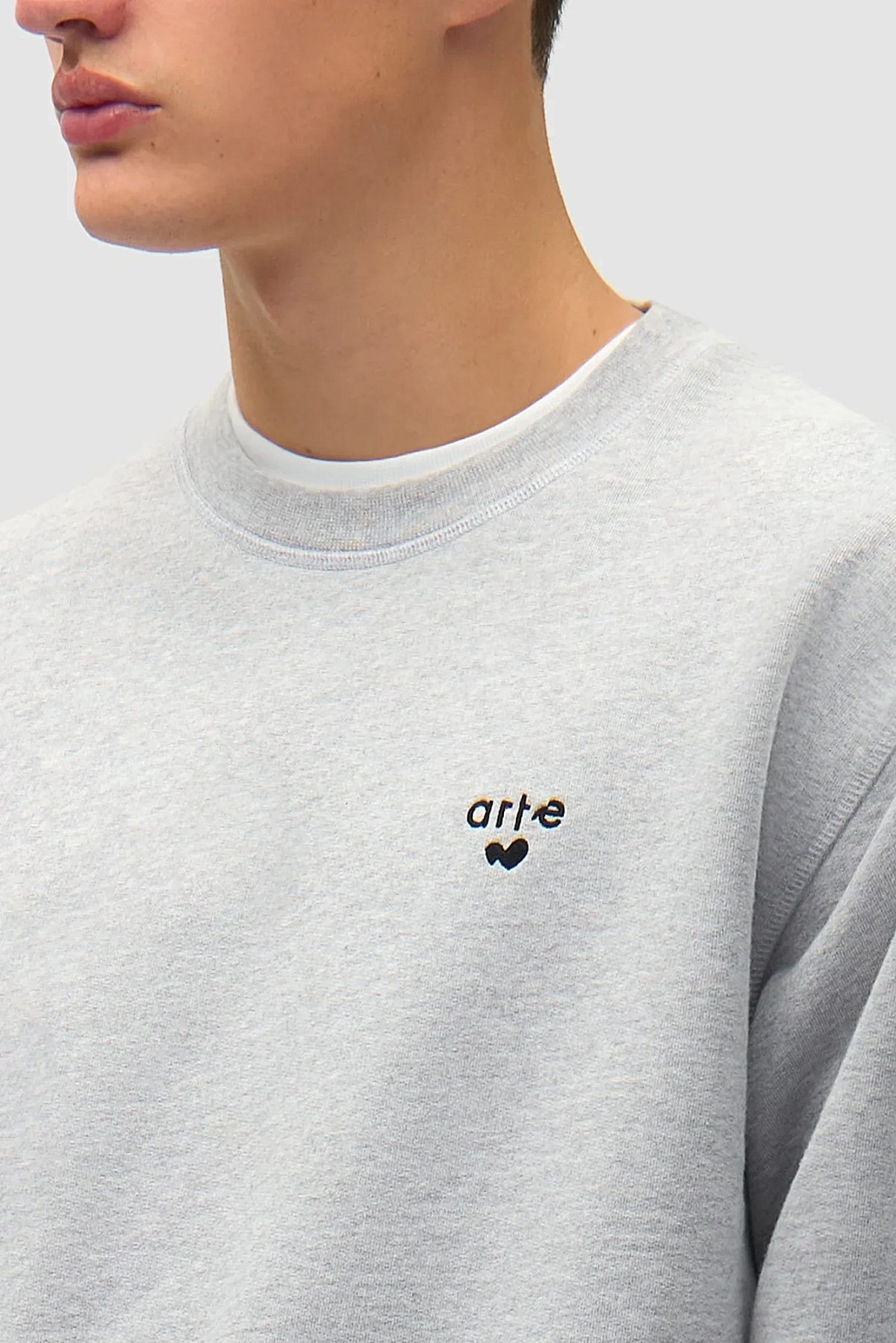 The crewneck features a seasonal distorted take on the Arte heart logo embroidered in black on the left of the chest. Made from premium heavyweight cotton, the grey crewneck has a slightly higher neck and a relaxed fit which is finished with ribbed cuffs, hem and neckline. Complete the look with the matching pants.