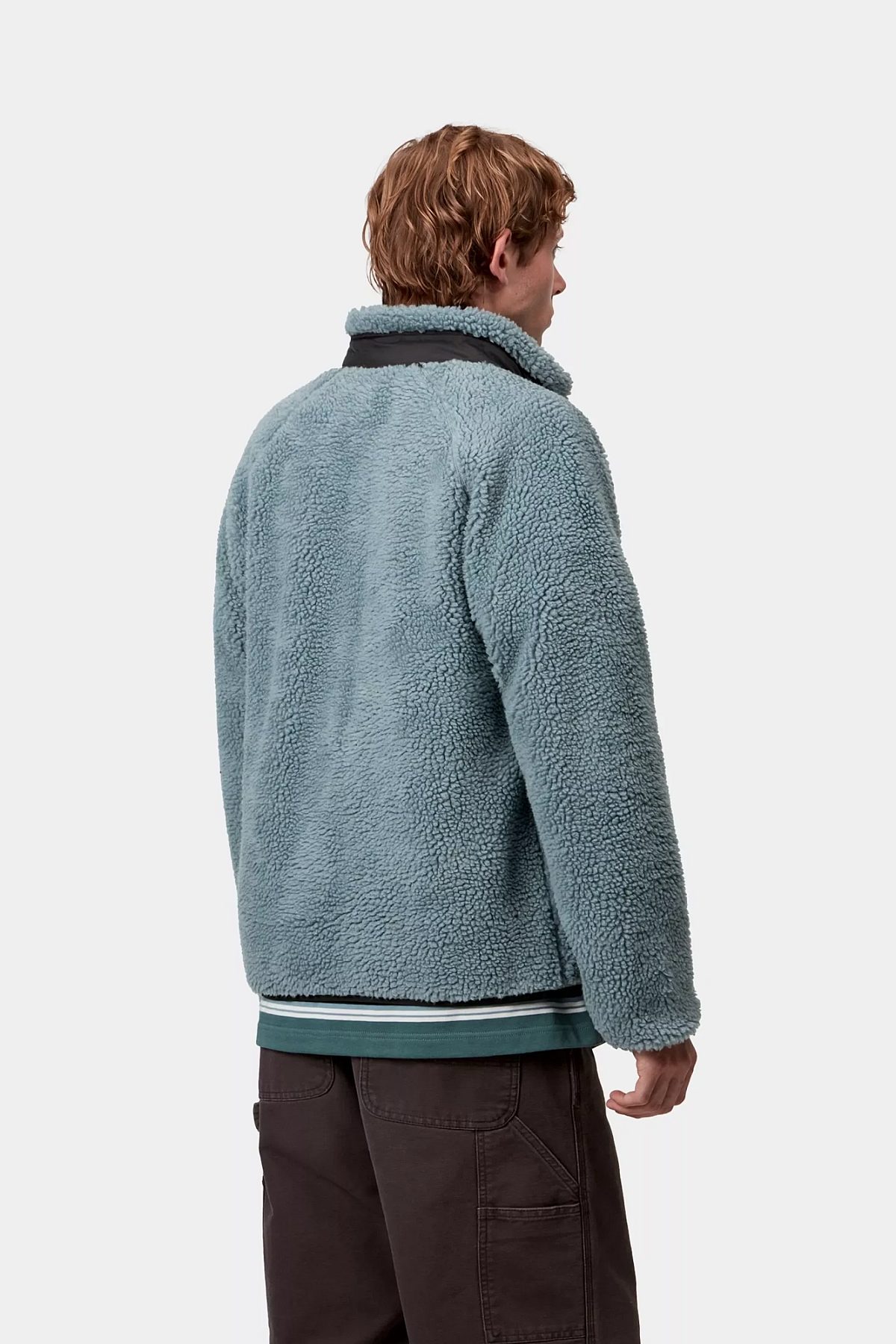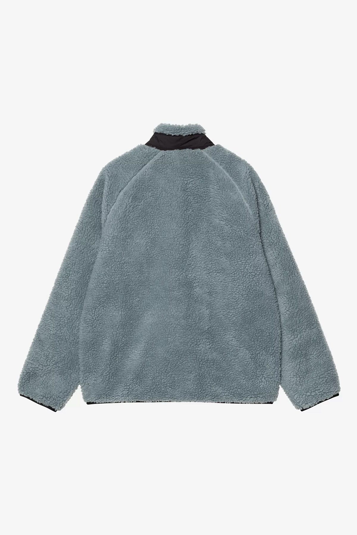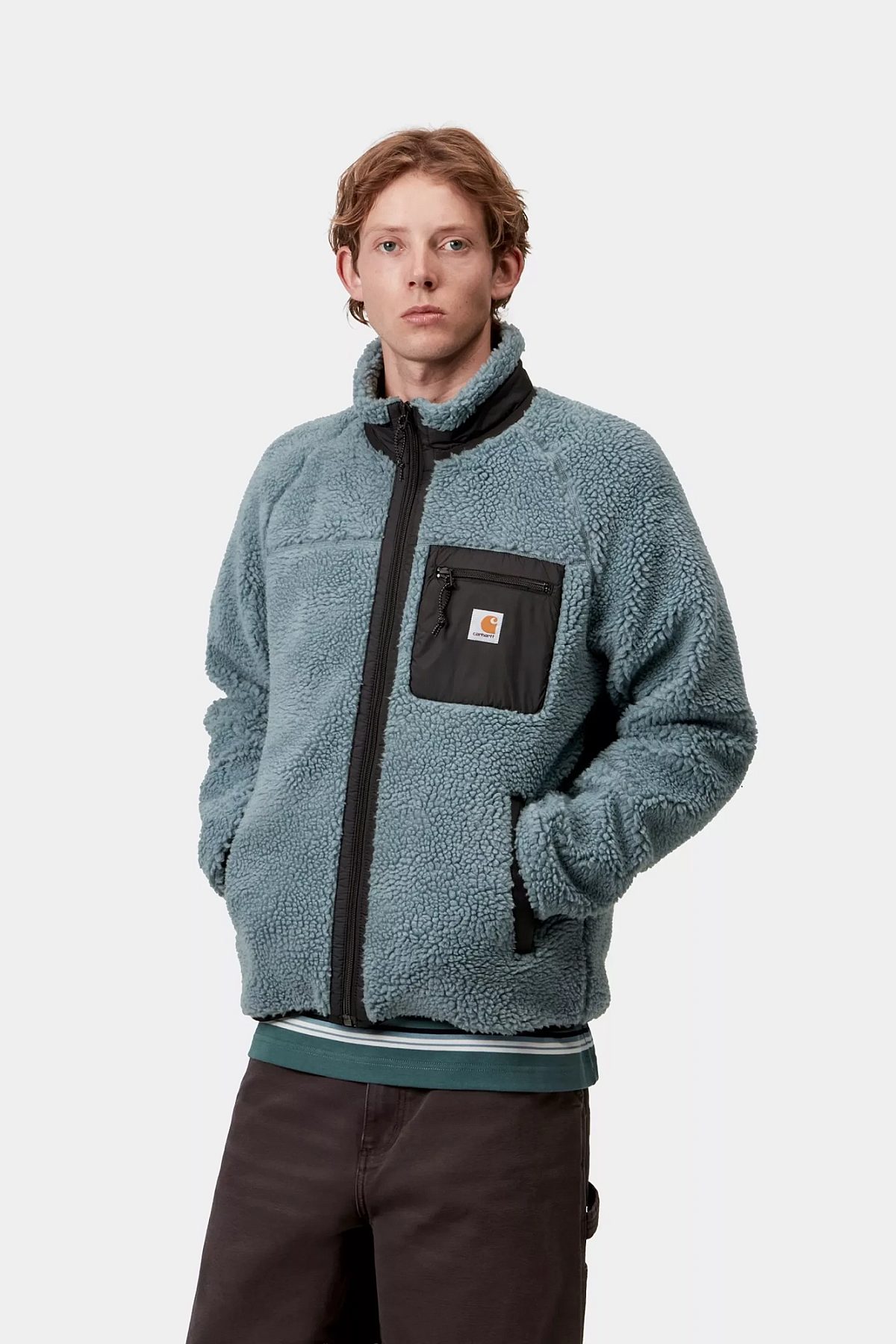 The Prentis Liner is a midweight style constructed from polyester pile. While some iterations of the Prentis Liner feature an allover block color, others have a jacquard outer shell depicting a camouflage design, or the baroque-inspired Verse motif. Inside, the garment is lined with mesh at the body and nylon taffeta at the sleeves. It is detailed with a funnel neck, contrasting nylon taffeta chest pocket and woven Square Label.