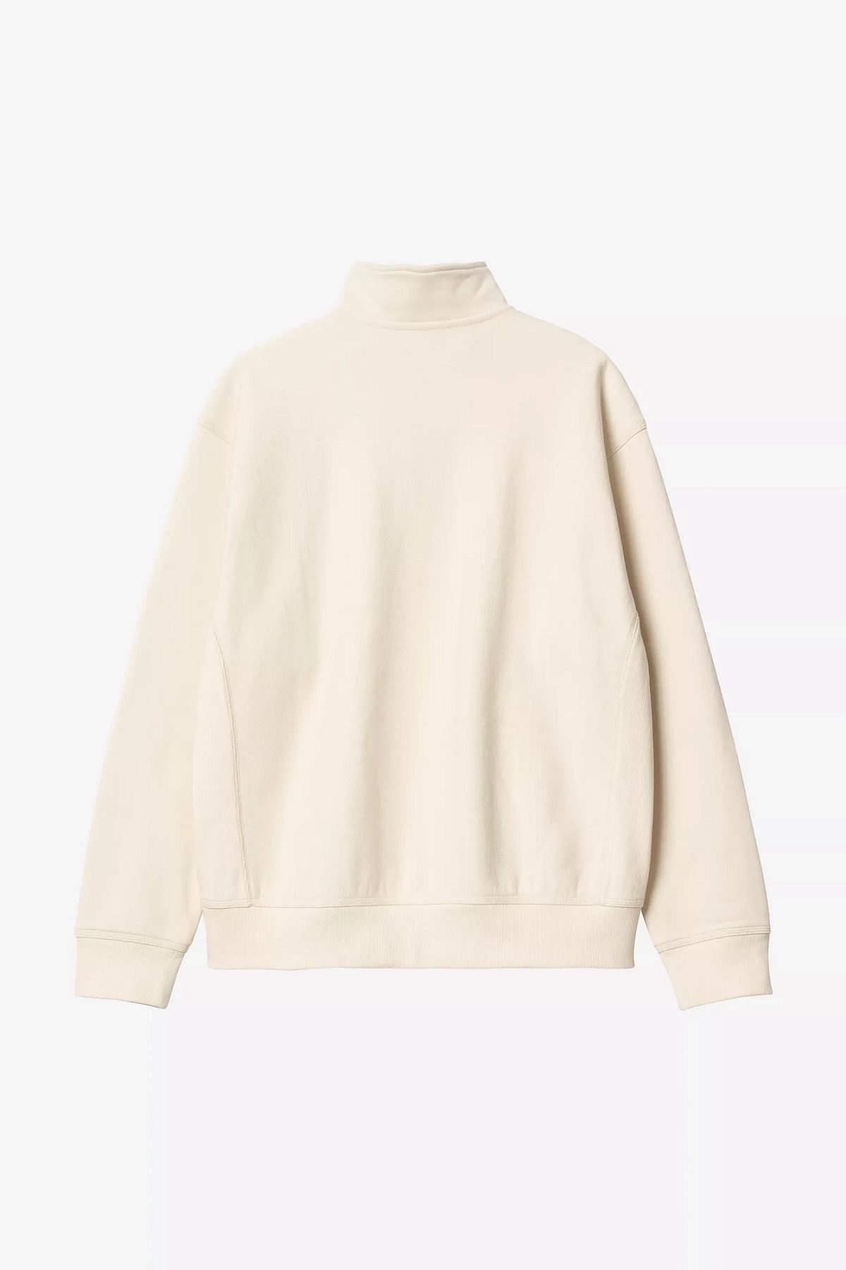 The Half Zip American Script Sweatshirt is constructed from a 12.3 oz cotton-polyester blend and brushed for extra softness and warmth, without losing breathability. The garment features a highneck with a zipper and a small logo. Appears in a loose, boxy silhouette.