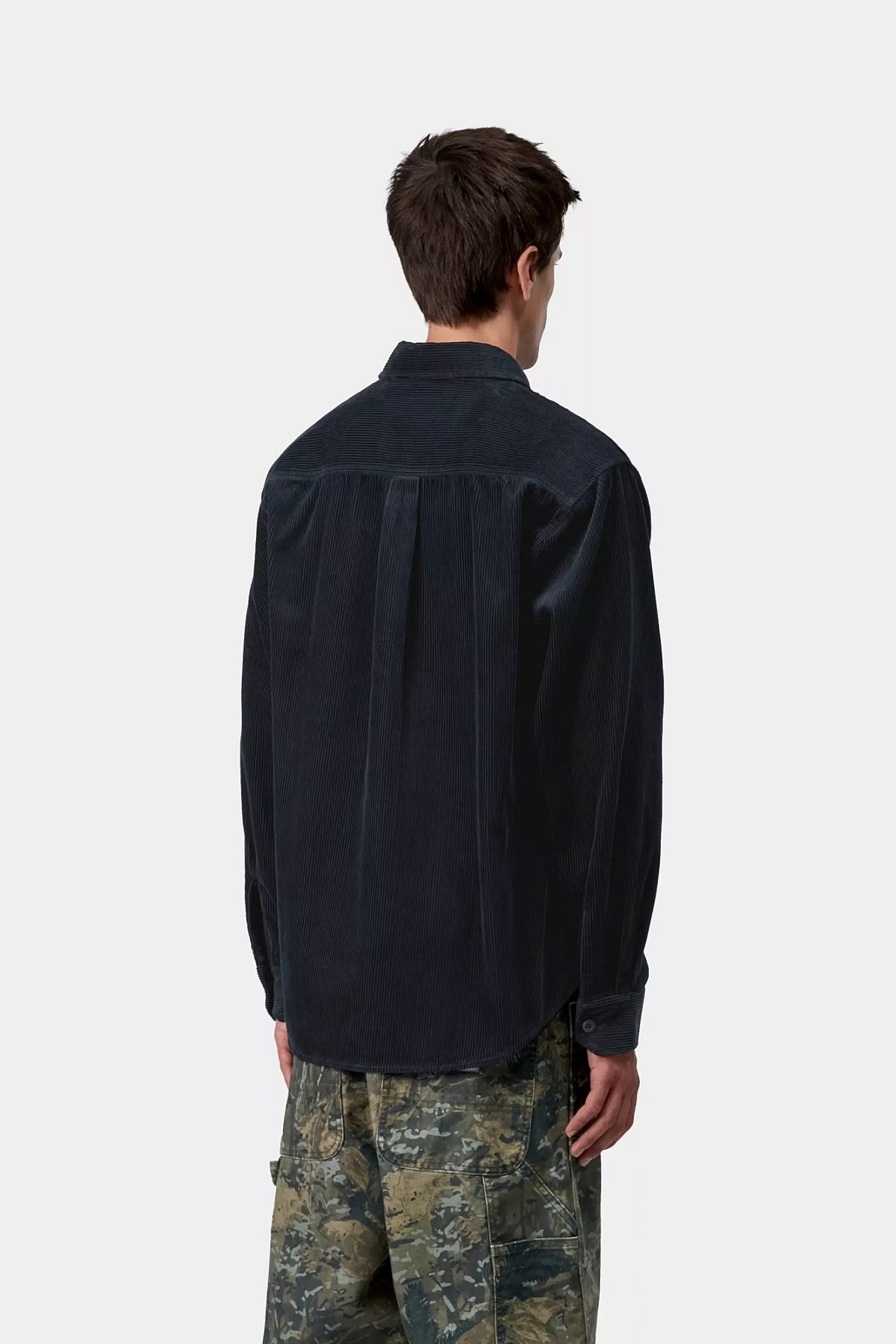 The L/S Flint Shirt is constructed from 8 wale cotton corduroy, meaning that the ridges in the fabric are of a wide thickness, and is cut to a loose fit. The style also features a curved hem, a buttoned front closure, and a single chest pocket finished with a woven Square Label.