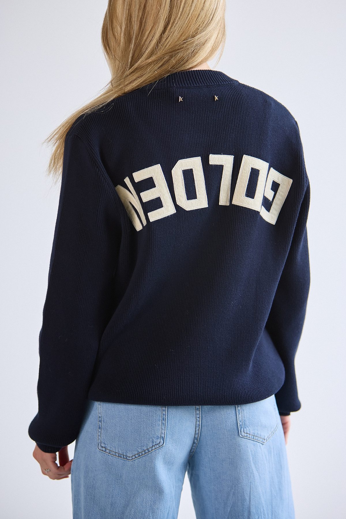 A unique, timeless collection that encapsulates the Golden Goose DNA, designed to remain with you every day, through thick and thin, come rain or shine. In dark blue cotton, this regular-fit round-neck sweater features a contrasting white logo on the back.