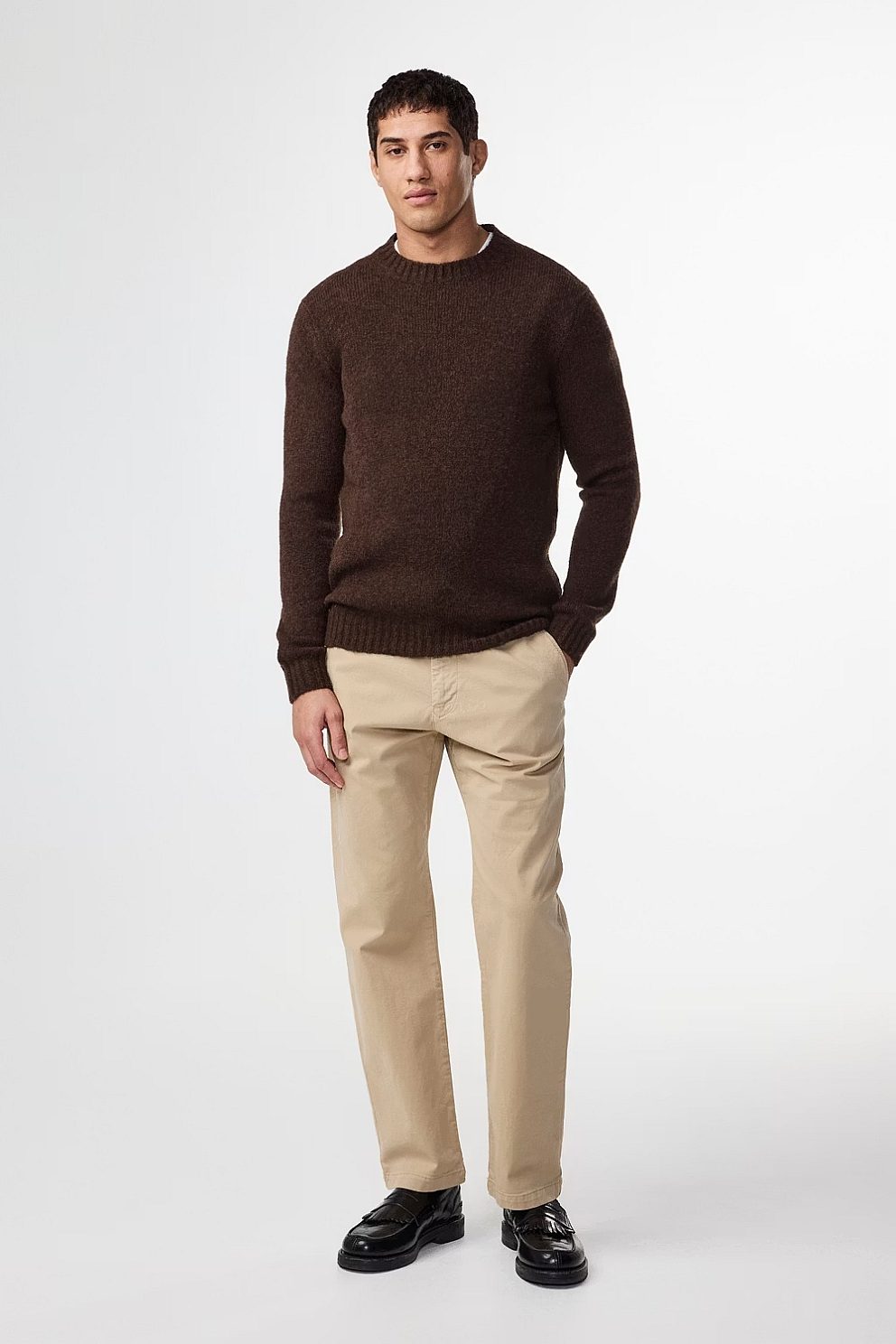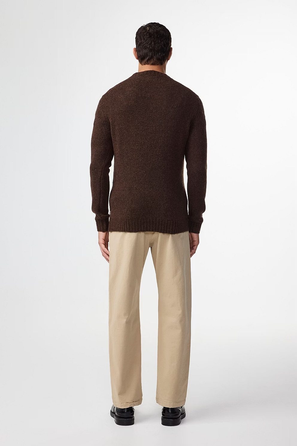 Lightweight pullover crew crafted in a merino wool blend. Features a drop-back shoulder with subtle fashion marks and a wide rib.