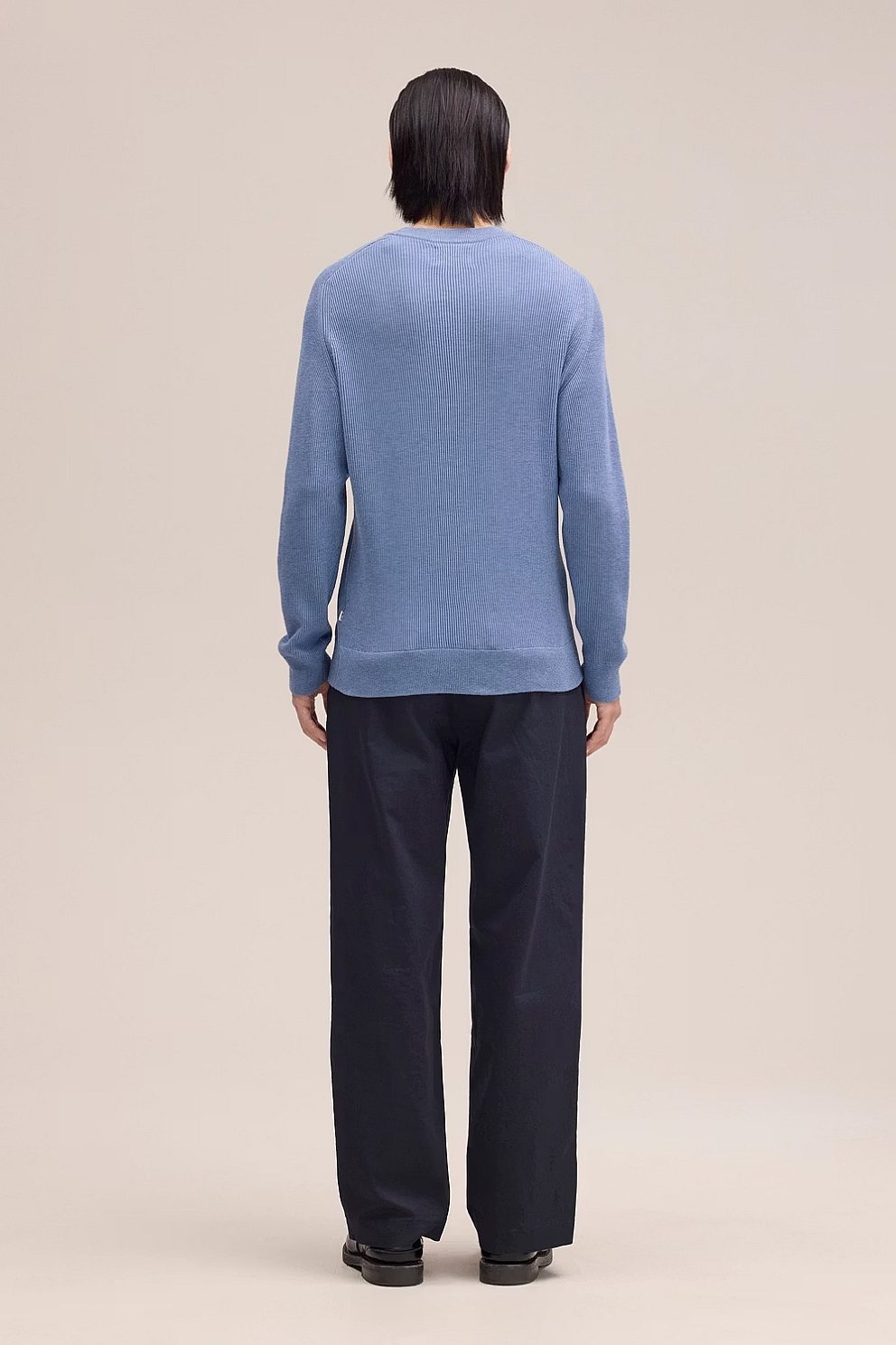Crew neck sweater crafted in soft organic cotton with a distinctive ribbed texture throughout. Features classic saddle sleeves and offers a lightweight, comfortable feel perfect for layering or wearing on its own.