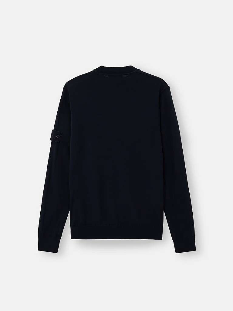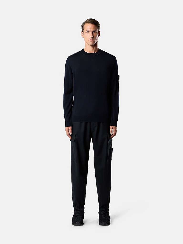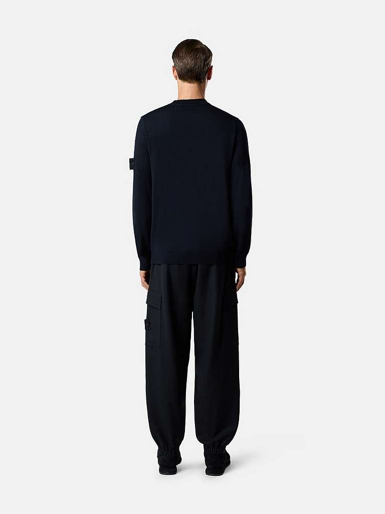 Knit crewneck jumper in light RWS pure wool with stocking stitch and ribbed trims. Gauge 14.