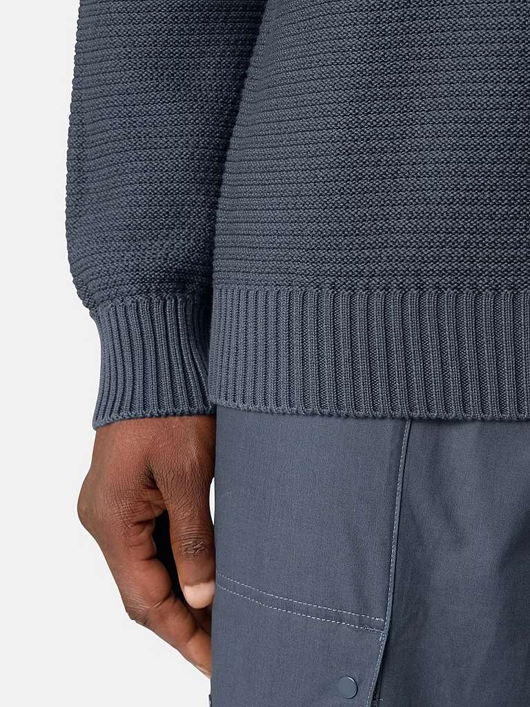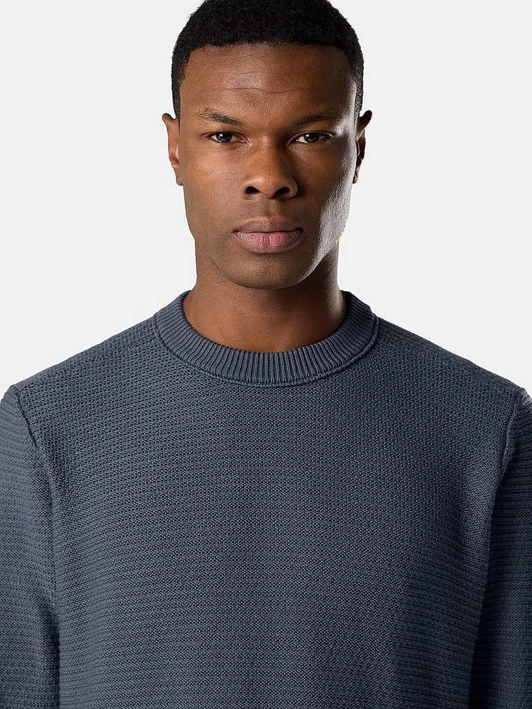 Knit crewneck jumper in cotton cashmere, featuring ribbed neckline, cuffs, and hem. Gauge 7.