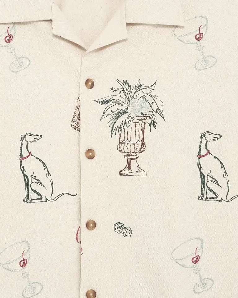 This cream short-sleeved cotton blend shirt features an all-over Country Club embroidery. It has an open collar, a loose fit and five front buttons.