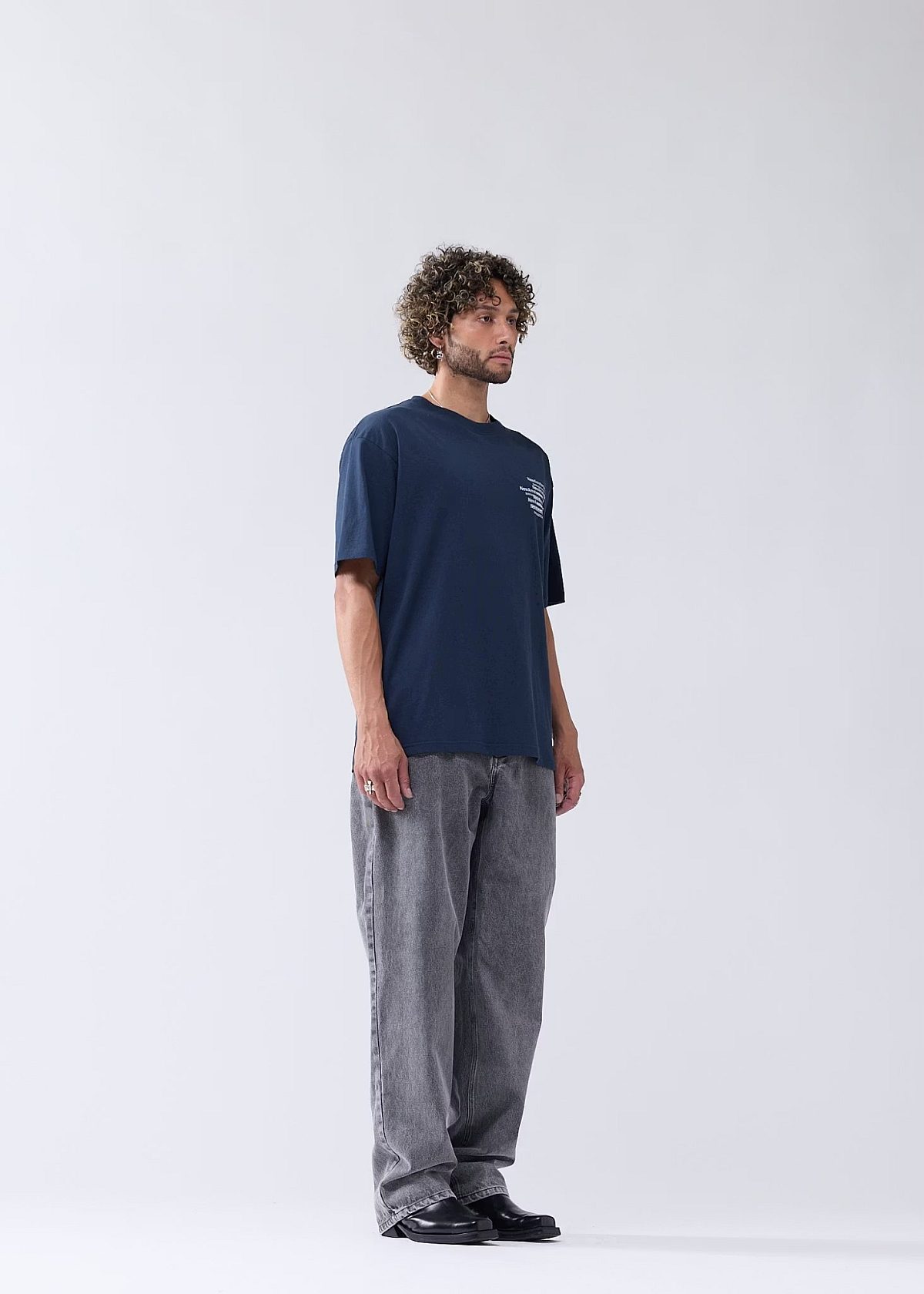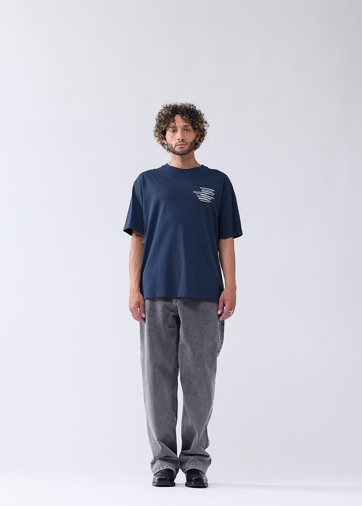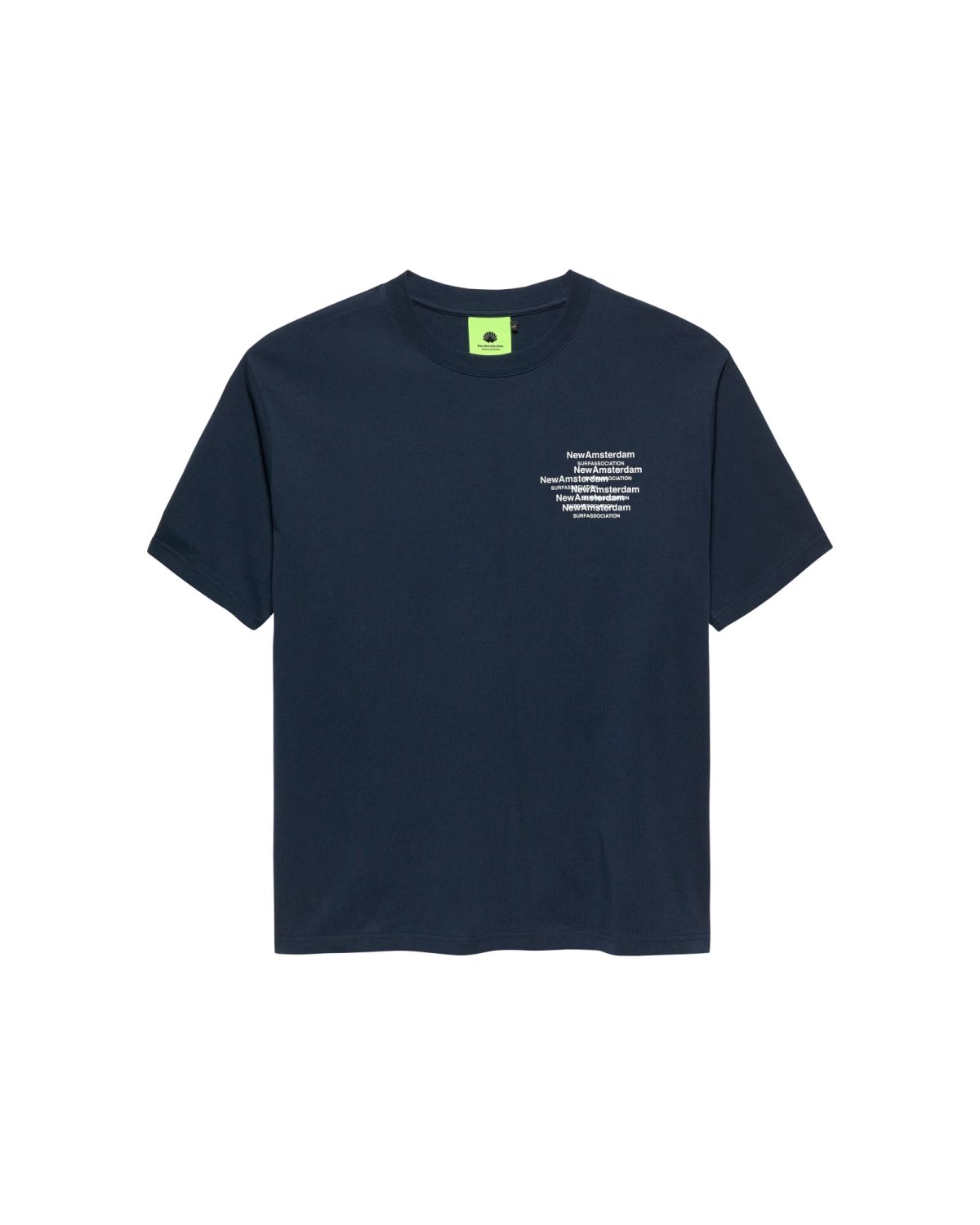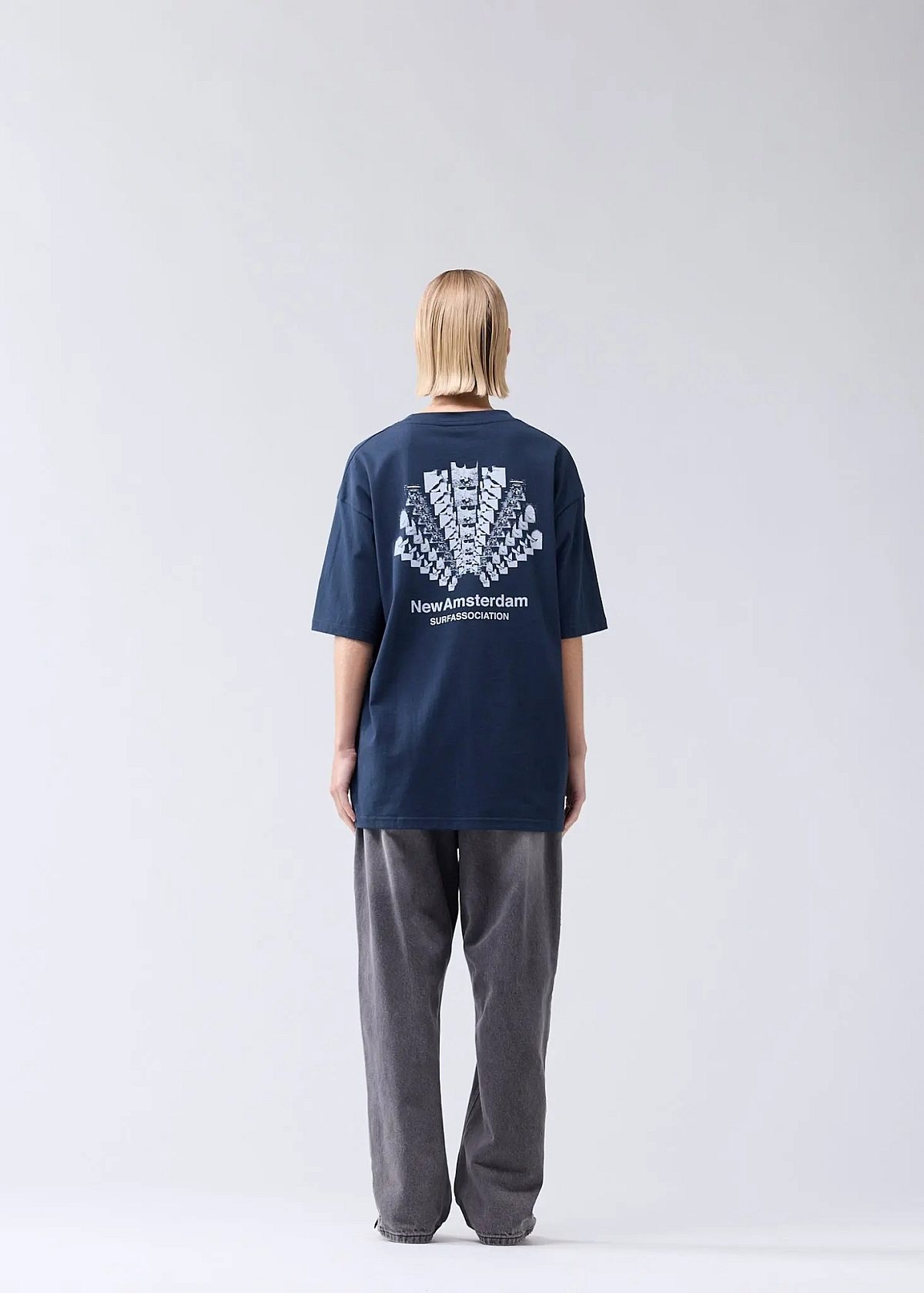 Crew neck t-shirt, cut to a regular unisex fit. Features a collage logo artwork on the front and back, made using photos from Wavey Zine. Printed with a screen print technique. Made from 240 GSM fabric-dyed cotton.