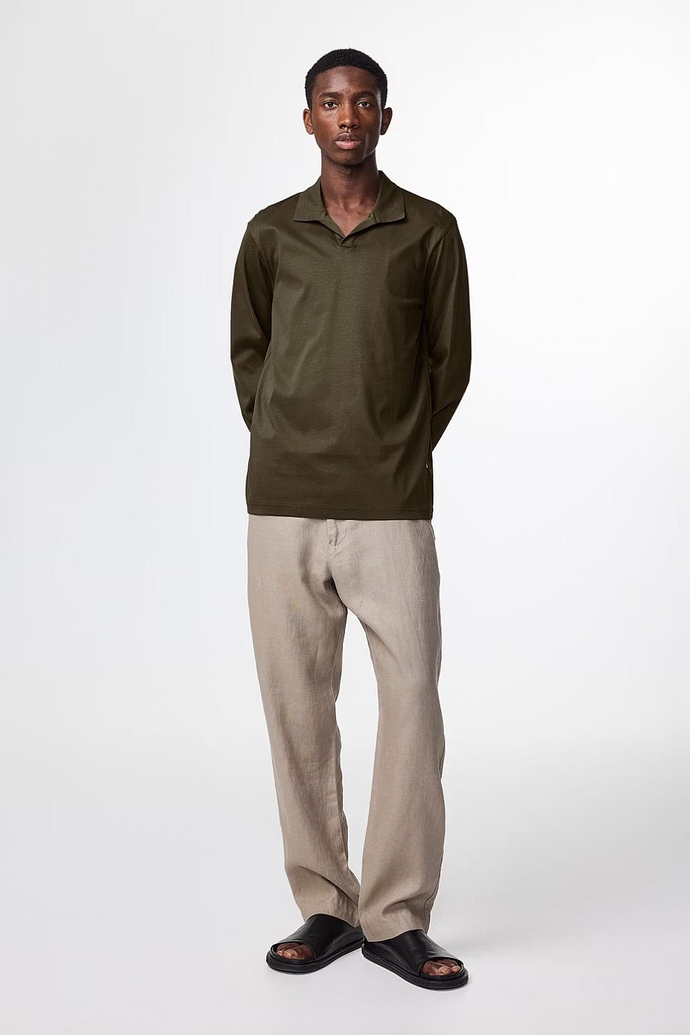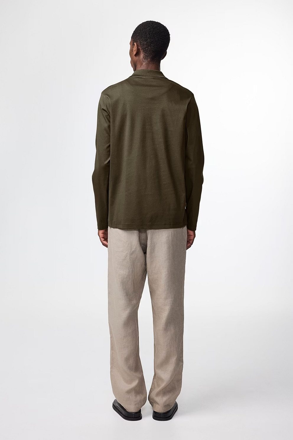 Classic open-collar polo crafted from organic cotton jersey. Finished with a narrow placket and clean twin-needle stitching throughout.
