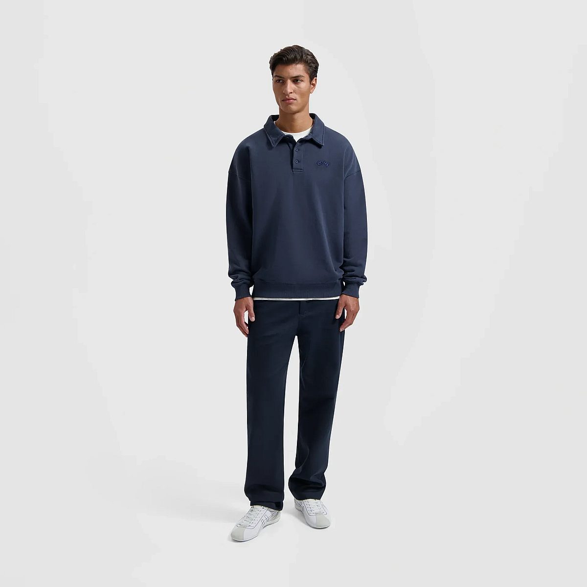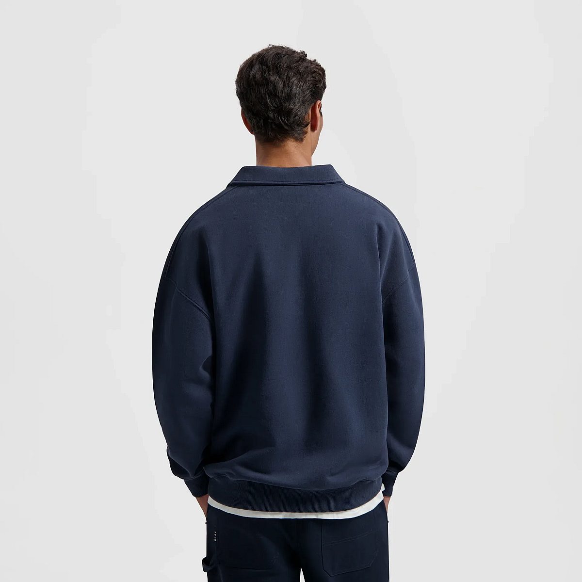 Elevate your casual wardrobe with the Signature Polo Sweatshirt in Navy. Crafted from soft cotton, it offers a comfortable fit, while its oversized design brings a contemporary twist to your look. Perfect for versatile wear, this polo features a wavy logo on the left chest and ribbed cuffs and hem, adding subtle yet distinctive details to its laid-back charm.