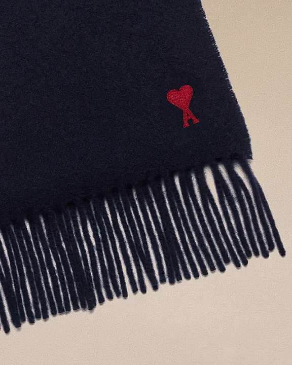 Navy fringed classic scarf in wool.