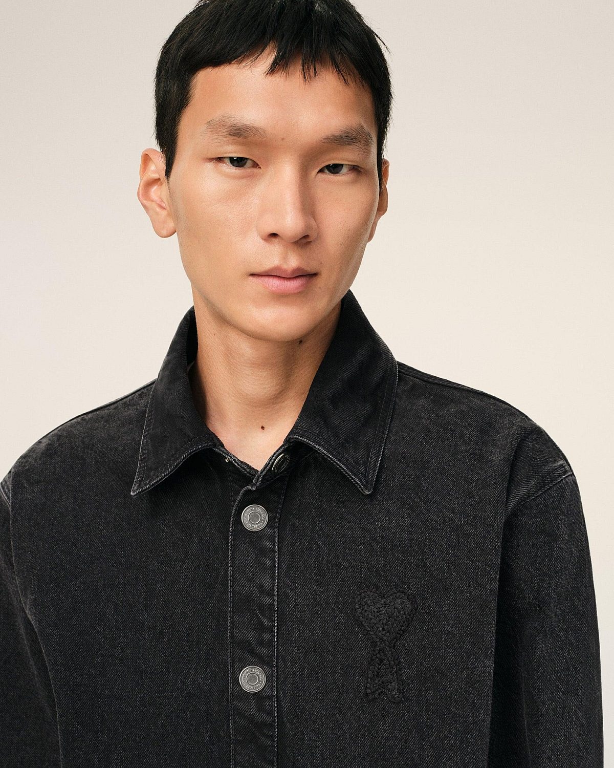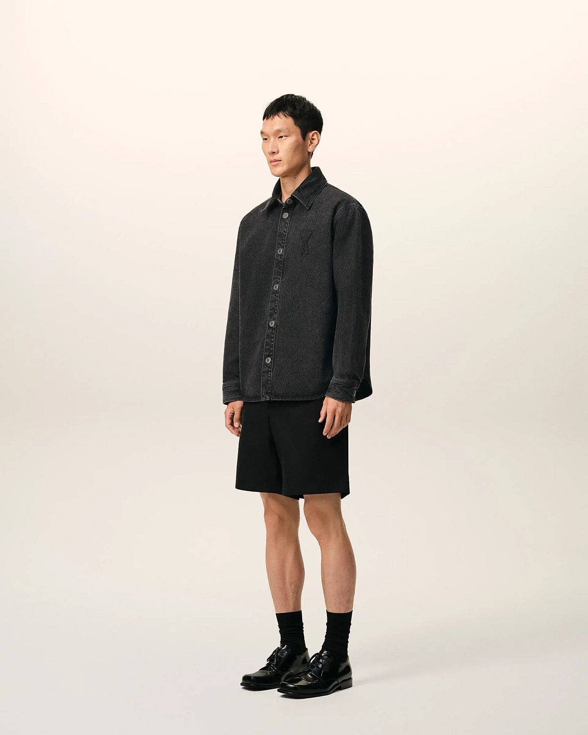 Overshirt in used black denim.