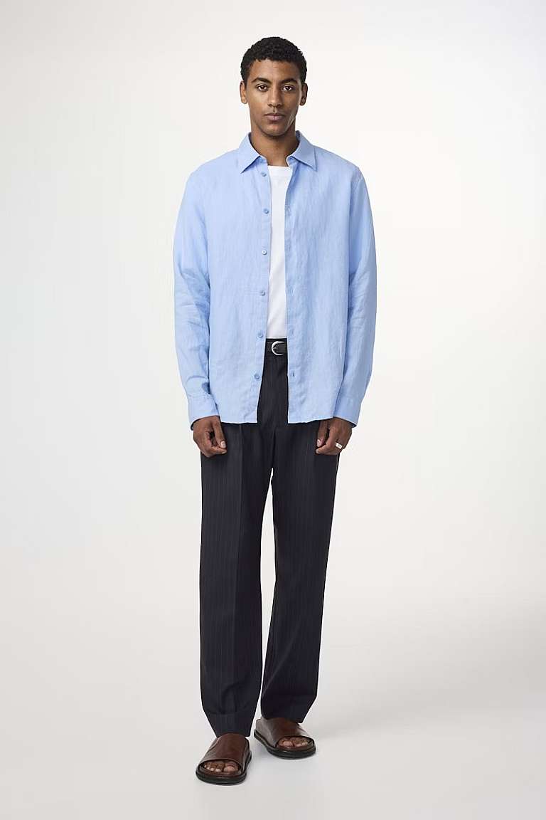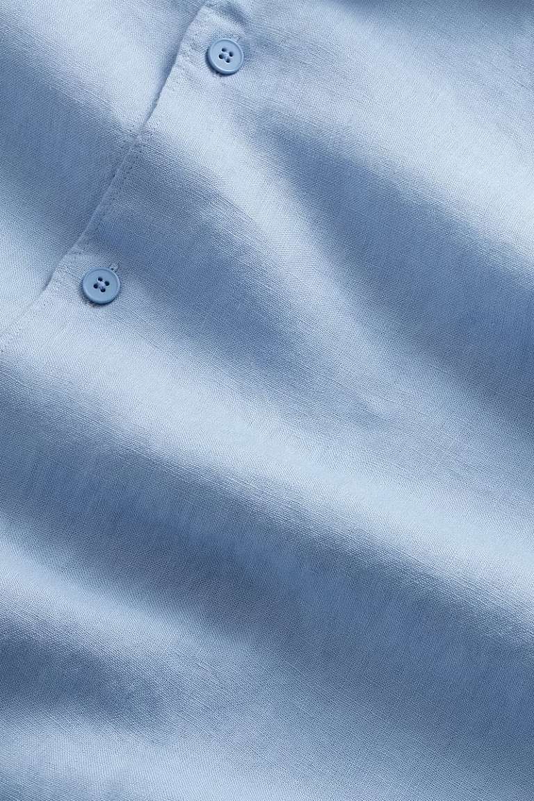 Shirt crafted from a crispy premium linen fabric with a soft feel, complete with dye-to-match buttons.