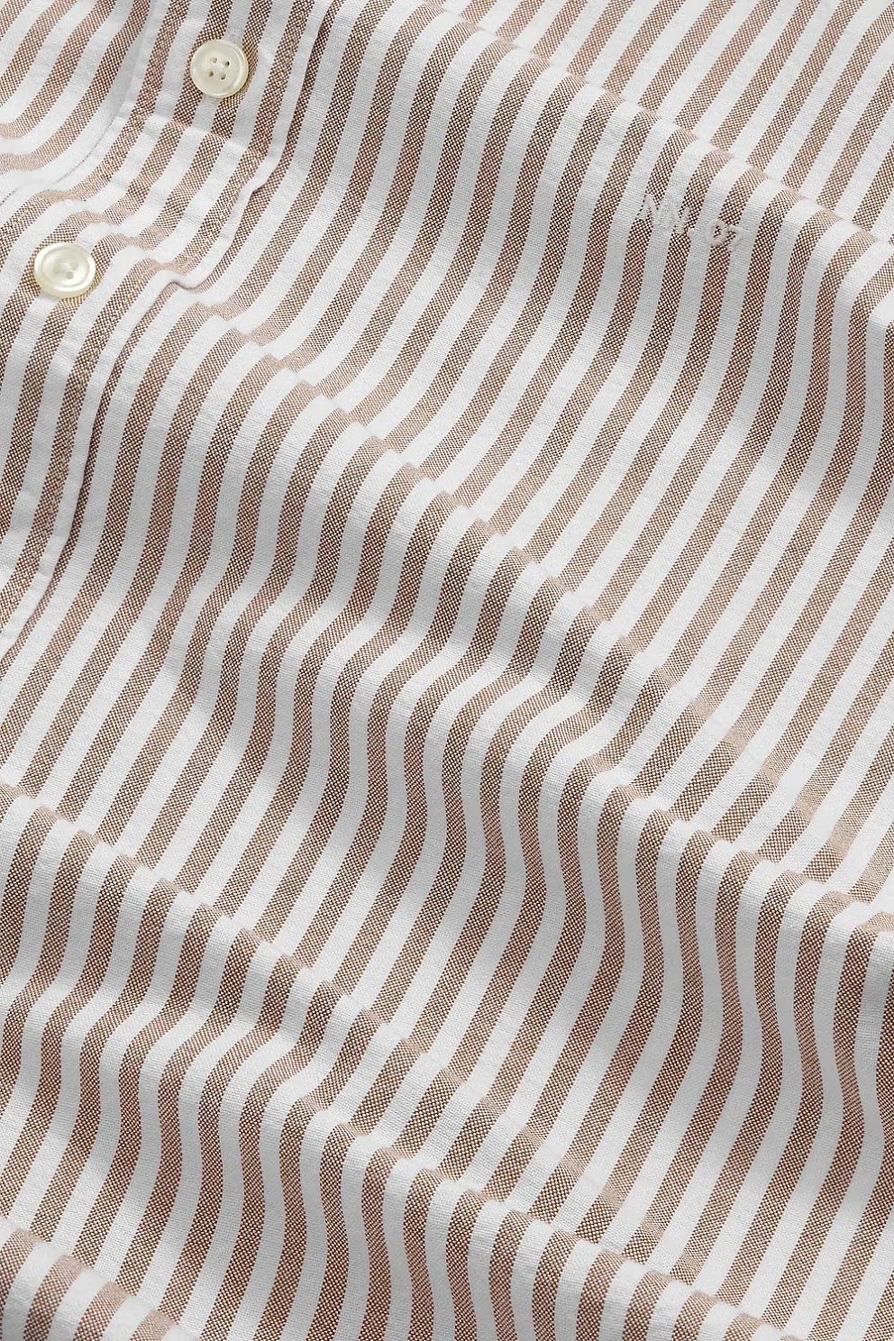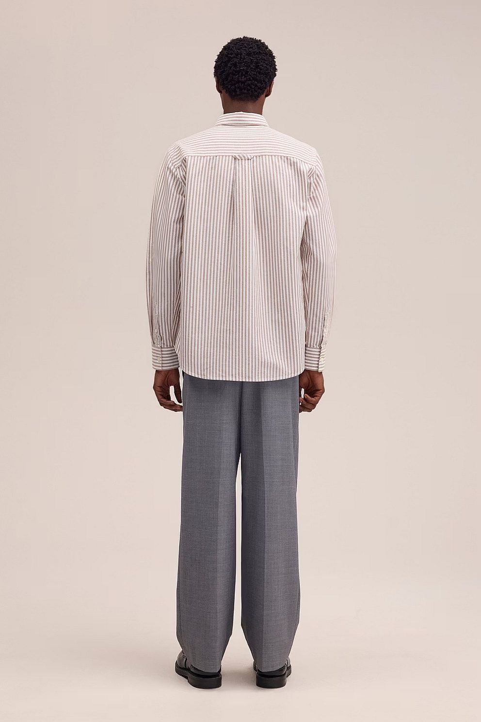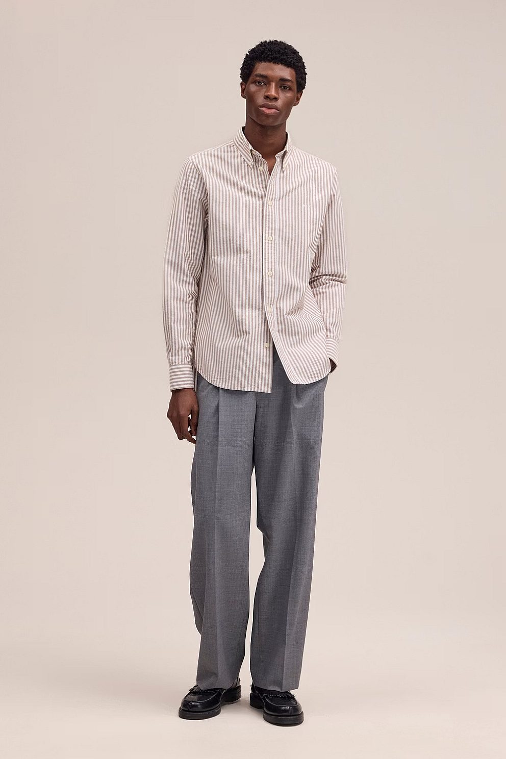 Button-down shirt crafted from soft organic cotton oxford with a classic weave texture. Features a button-down collar and wide placket for a sophisticated yet relaxed aesthetic.