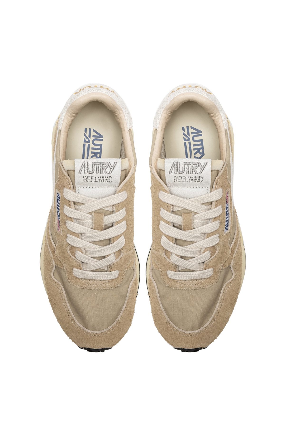 Innovative, light and extremely flexible, Reelwind Autry sneakers draw inspiration from the running world. The men's style is crafted from a mix of beige nylon and suede, with side panels in white crackle-effect leather.