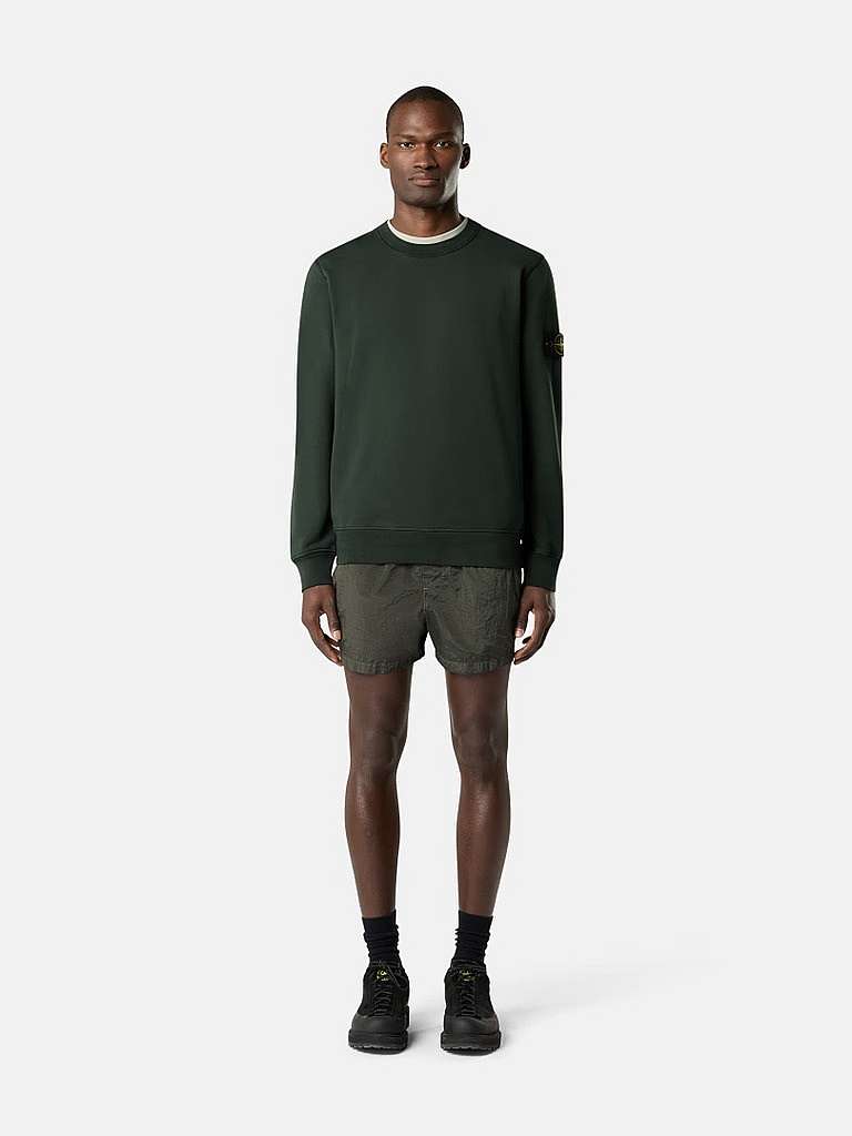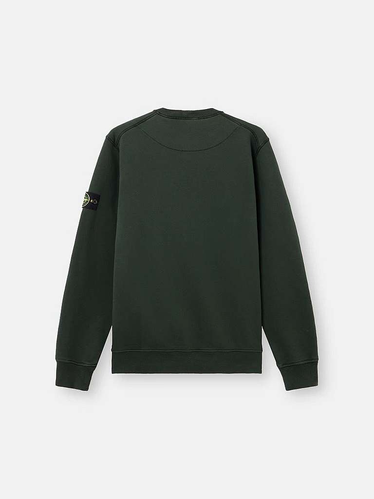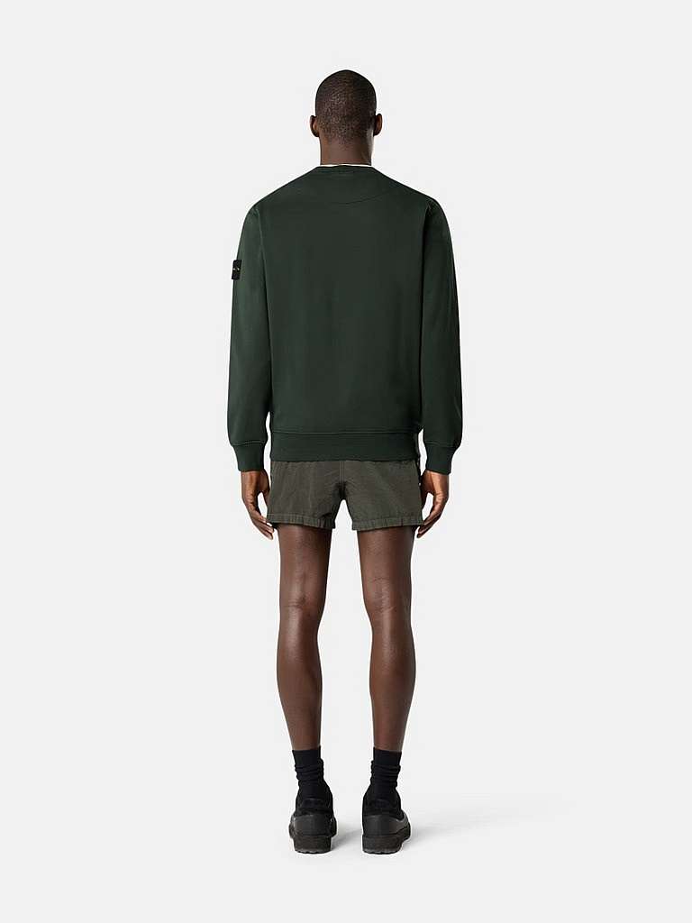 Crewneck sweatshirt in organic cotton fleece featuring overlock seams, a lunette with inner lining, and elasticated ribbed trims. Garment dyed.