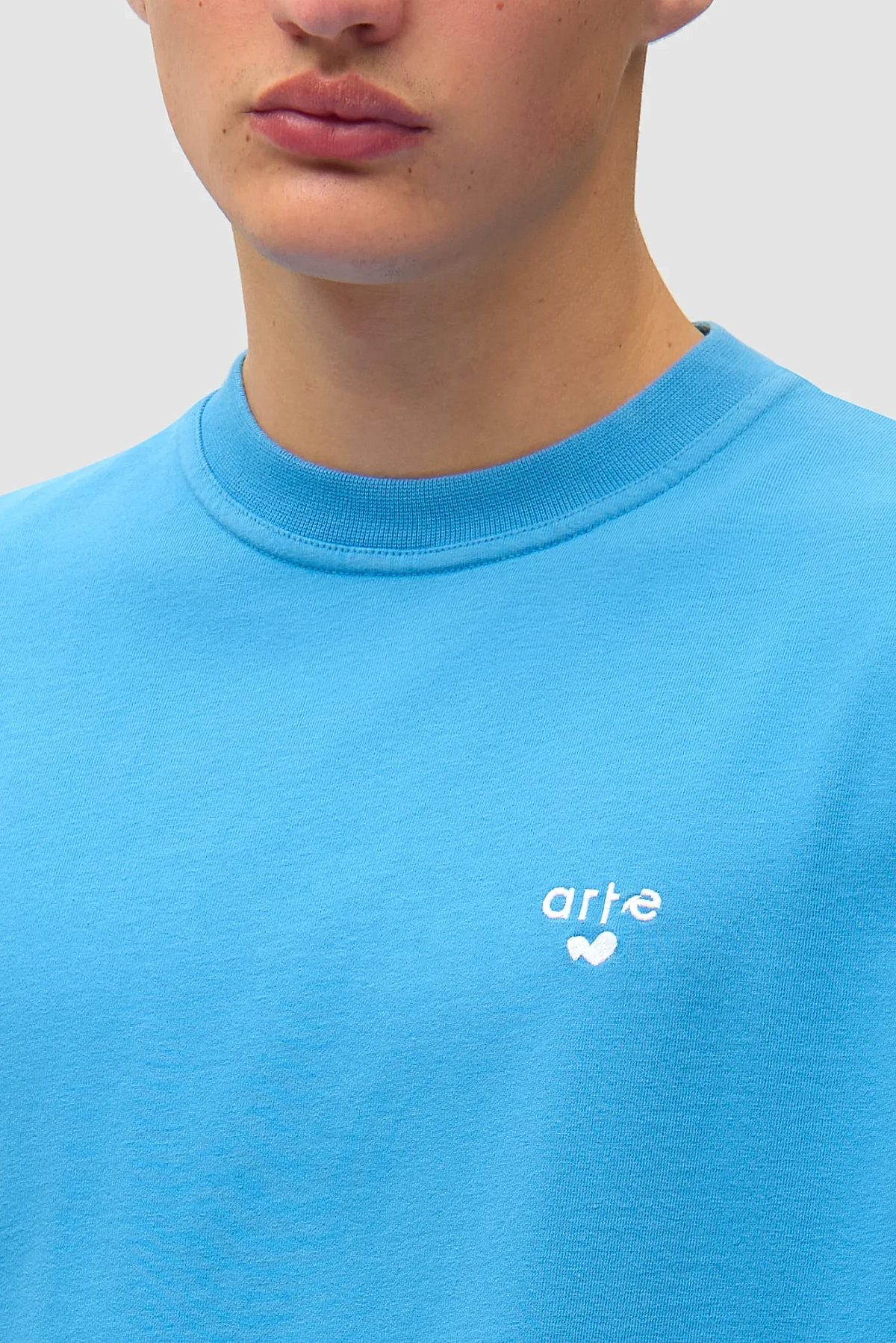The T-shirt features this season's take on the signature Arte heart logo, visually distorted and embroidered in white on the left of the chest. Made from premium heavyweight cotton, the blue T-shirt has a relaxed fit and a slightly higher neckline.