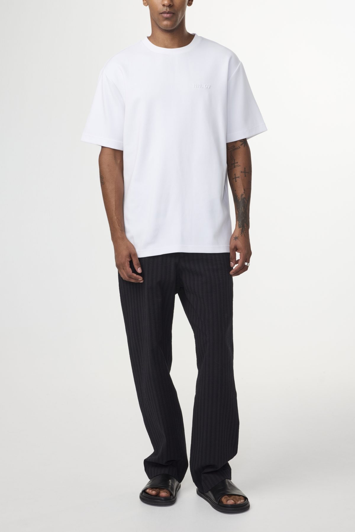 Relaxed fit and heavyweight logo tee, knitted in a Ponte di Roma stitch from certified cotton and TENCEL™ Lyocell, with a touch of stretch, featuring an embossed NN.07 logo on the chest.